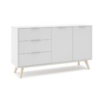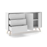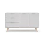 Aparador de 2 puertas y 3 cajones modelo CAMPUS, fabricada en madera DM/pino en color blanco/cera blanca.