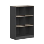 Estantería de 80 cm de largo que 6 huecos, ideales para decorar y almacenar lo que necesites. Su estructura en acabado cambrian/antracita, crean un estilo contemporáneo ideal para combinar con toda la colección de muebles New office.