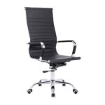 Sillón oficina modelo PLYMOUTH, tapizado respaldo alto y asiento PU negro, estructura gris.