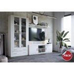 Composición apilable de salón modelo NAPOLES, color blanco e iluminación led. Combinación ideal de elementos noblemente modernos y funcionales. Este conjunto