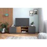Mueble Bajo Tv Coleccion Chos, de 160cm Disponible en color Oak-Negro Medidas: L160 x F42 x A55