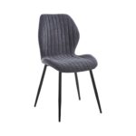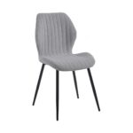 Silla de estilo contemporáneo, tapizada en tejido de diferentes colores, las patas son de metal negro.Colores Disponibles: Beige clao, Gris oscuro, Mostaza, Marron teja, Gris hielo, AguamarinaMedidas: L47,5 x F57,5 x A48/85
