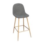 Taburete modelo BORNEO, patas metálicas color cambrian y tapizado en tela Merecurio color gris. • Propiedades: 4 unidades por caja.   Medidas: